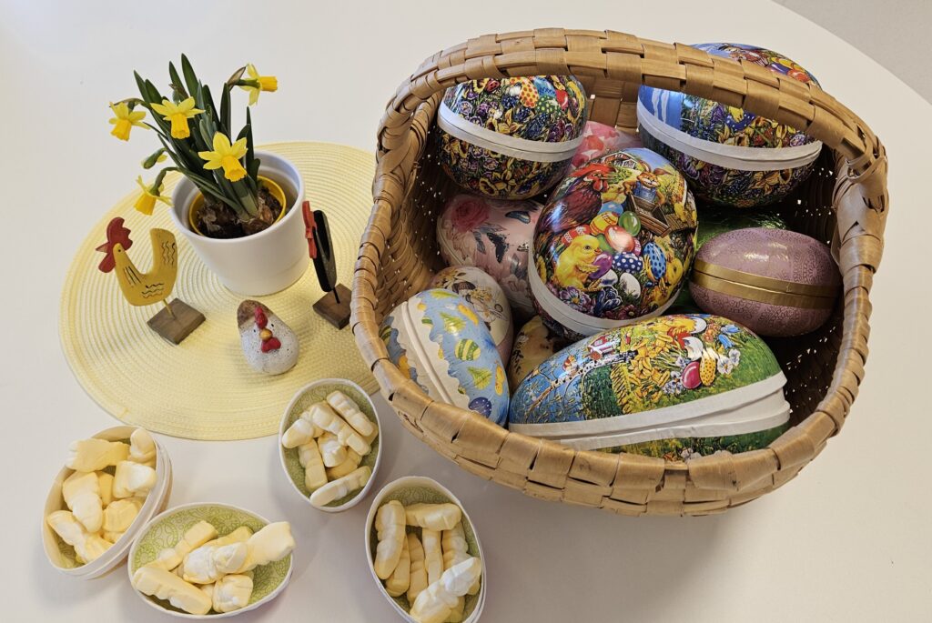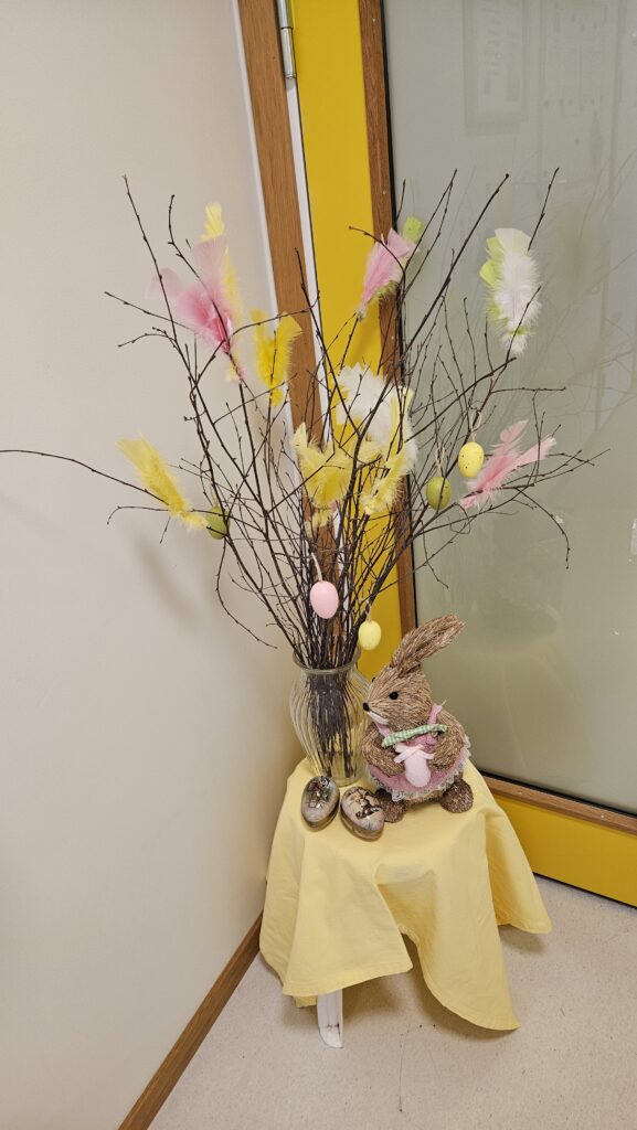 Här kommer lite bilder från vårat påskfirande på 4B. Vi spelade bingo på skärtorsdagen och fick besök av en påskkärring, som bjöd med oss alla till Blåkulla på fest. De flesta av oss valde att vara kvar här och äta tårta, då vädret inte var att lita på och vi var tveksamma om vi ens skulle hinna tillbaka till påskafton då det vankades lax till lunch.