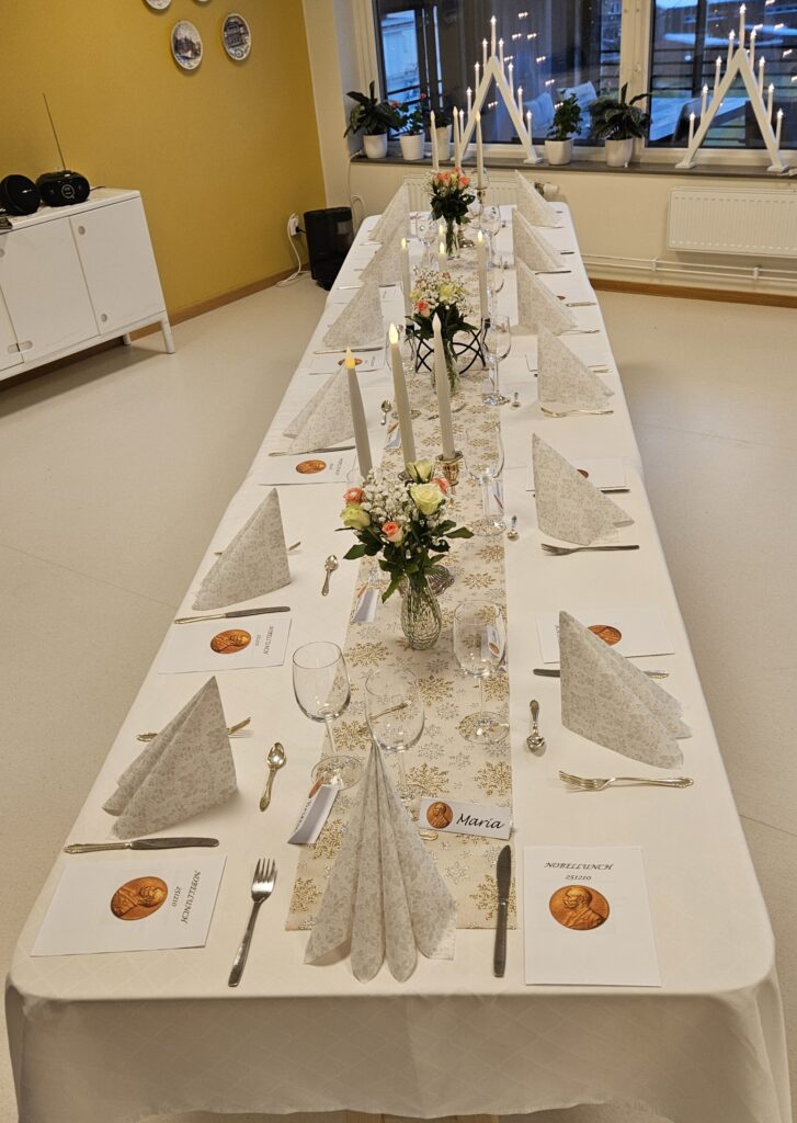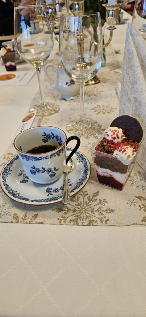 Sedan blev det kaffe och dessert, den la sig som bomull kring hjärtat. Tack alla som var med på våran fantastiska Nobellunch för en härlig eftermiddag.