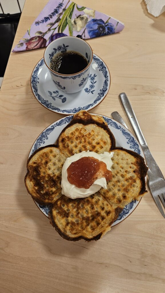 Vi kunde inte vänta ända till 25 mars, så idag blev det våfflor till kaffet.