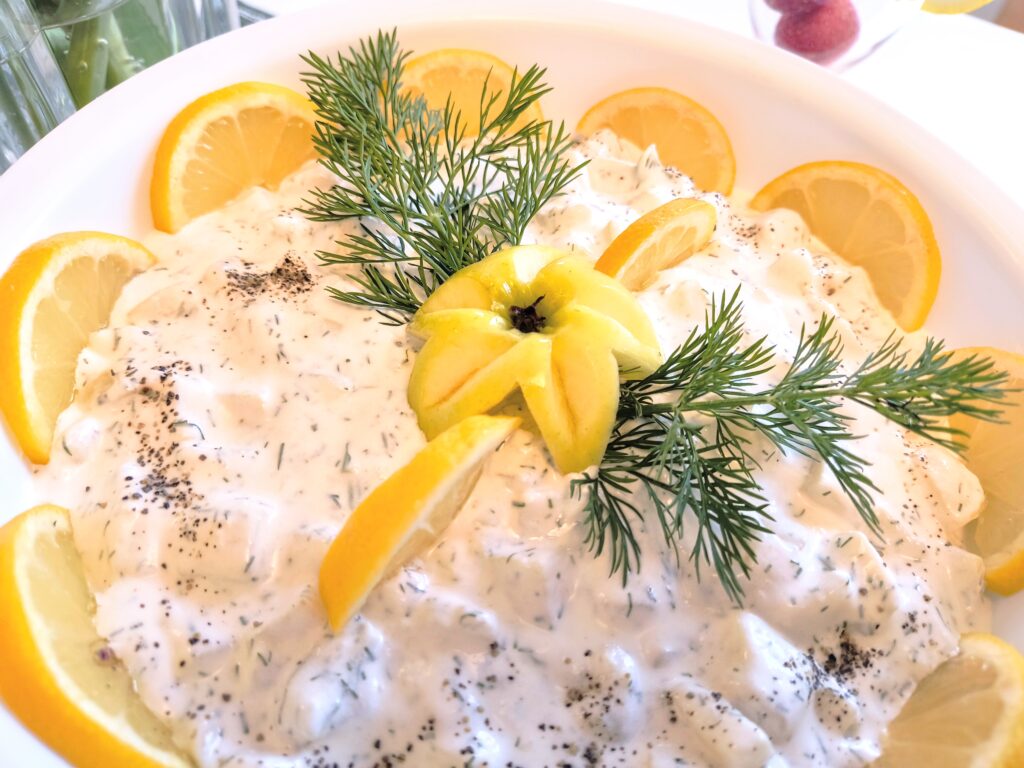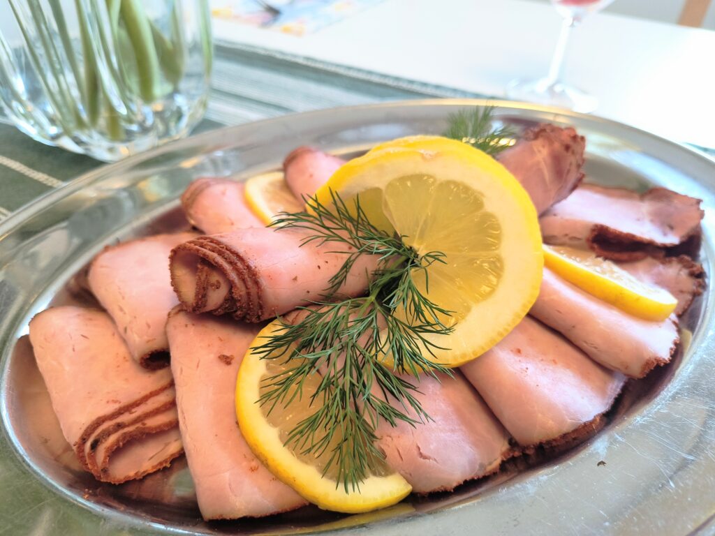 Till kvällen serverades det Pastrami och potatissallad från Lundagårdens kök och lokalerna är utsmyckat med blommor inför påsk helgen.