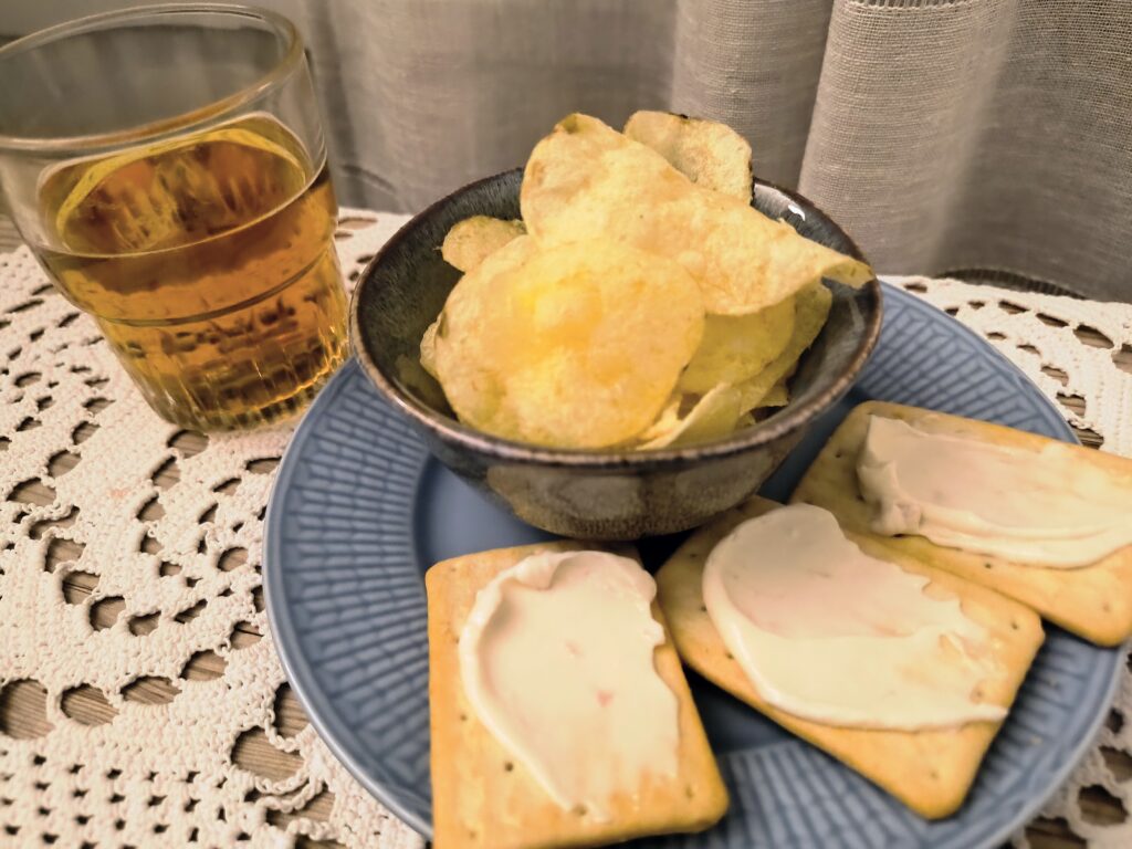 Avslutar på kvällen med lite tilltugg och något gott att dricka samt andra aktiviteter som pussel.