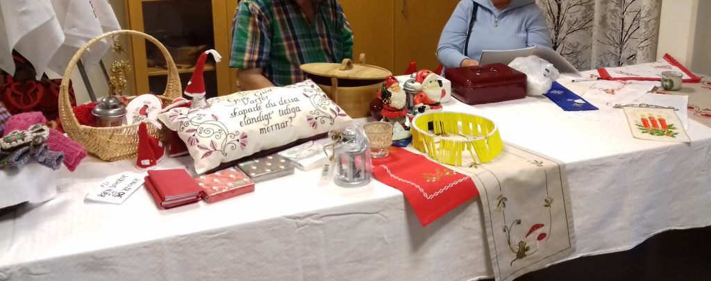 Den 8:e december var det dags för årets julmarknad. Vi hade besök av flera utställare med lite olika saker att köpa, bland annat lotter, servetter, handdukar med fina motiv, förkläden, bakverk, vävda dukar och snidade askar.