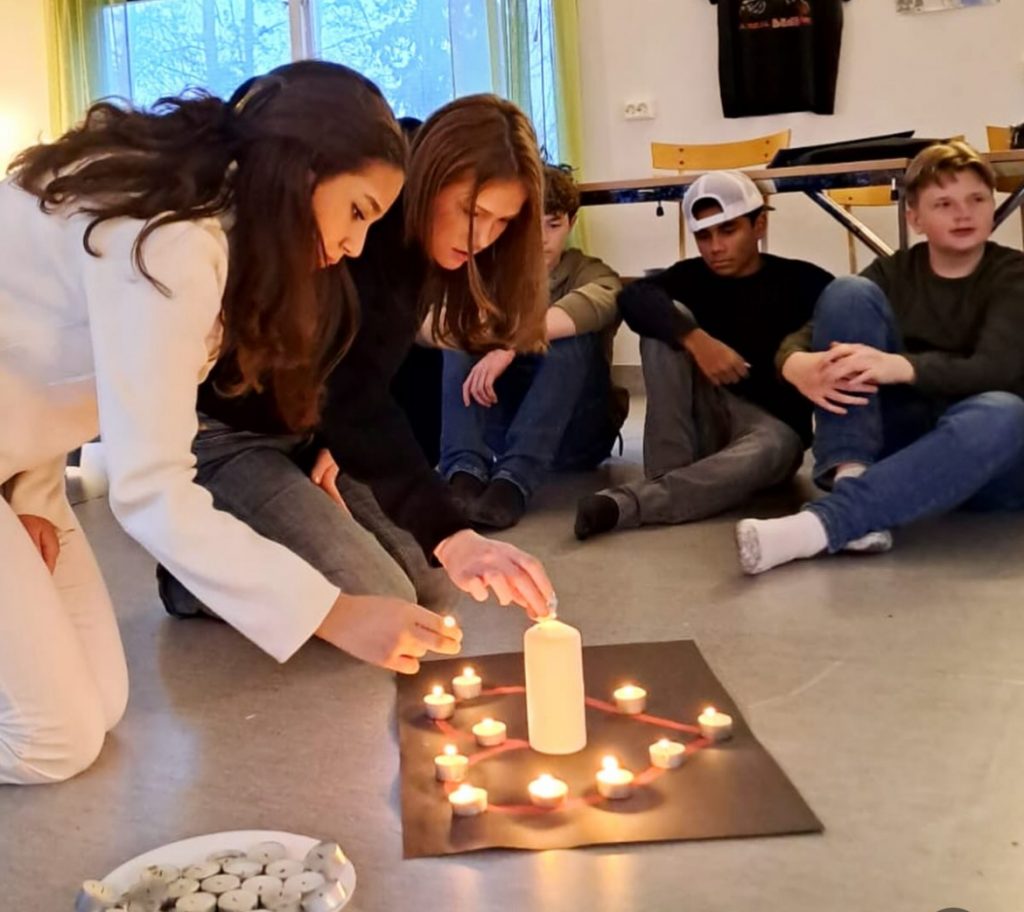 Dagen avslutades med en liten ceremoni med ljus som tändes för människor vi älskar. Ännu en fin och varm dag med eleverna i Toleransprojektet var över och gruppen tar kliv framåt i kunskaper, i att våga utmana sig själva och i gemenskap.