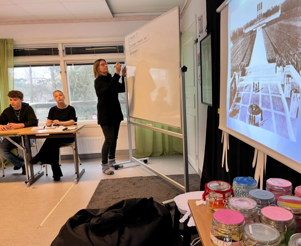 Vi började med att vända ett antal frågor inåt, mot oss själva. Hur gör vi när vi stänger andra ute – med tonfall, kroppsspråk, ord och handlingar? Utifrån detta gav vi oss in i det första stora faktamomentet kring Förintelsen som idag handlade om hur nazisterna lade upp planen för och inledde den process som innebar att framförallt judar, men också romer och andra grupper, undan för undan stängdes ute och diskriminerades genom särskilda lagar som gjorde livet svårare och svårare. Vi analyserade bilder och gick från år 1933 till 1938 – under flitigt antecknande i skrivböckerna.